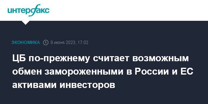 ЦБ по-прежнему считает возможным обмен замороженными в России и ЕС активами инвесторов