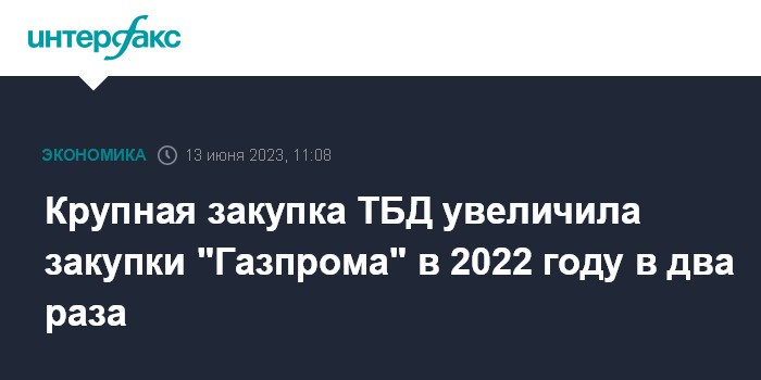 Крупная закупка ТБД увеличила закупки "Газпрома" в 2022 году в два раза