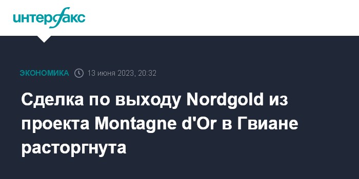 Сделка по выходу Nordgold из проекта Montagne d'Or в Гвиане расторгнута
