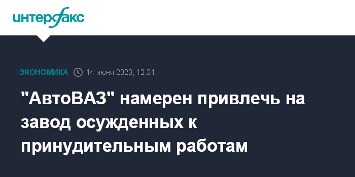 Москва. 14 июня. INTERFAX.RU - АО "АвтоВАЗ" в связи с планами по увеличению объемов производства планирует привлечь на завод осужденных к принудительным работам, сообщается на сайте управления ФСИН по Самарской области.