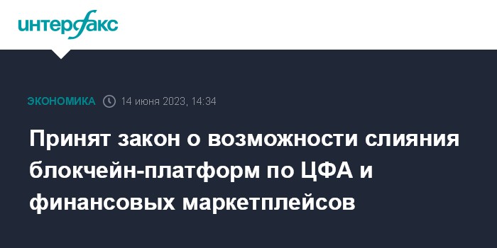 Принят закон о возможности слияния блокчейн-платформ по ЦФА и финансовых маркетплейсов