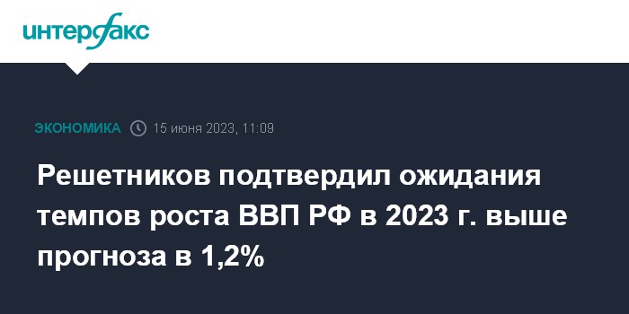 Решетников подтвердил ожидания темпов роста ВВП РФ в 2023 г. выше прогноза в 1,2%