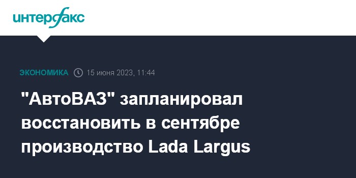 Москва. 15 июня. INTERFAX.RU - АО "АвтоВАЗ" рассчитывает в сентябре восстановить производство Lada Largus, сообщил президент компании Максим Соколов в рамках Петербургского международного экономического форума (ПМЭФ-2023) .