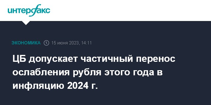 ЦБ допускает частичный перенос ослабления рубля этого года в инфляцию 2024 г.