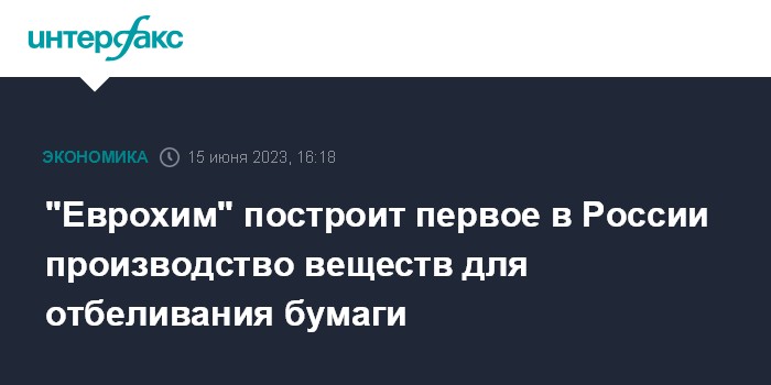 "Еврохим" построит первое в России производство веществ для отбеливания бумаги