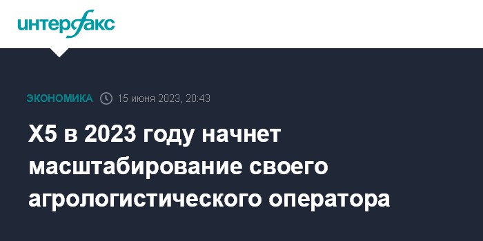 X5 в 2023 году начнет масштабирование своего агрологистического оператора