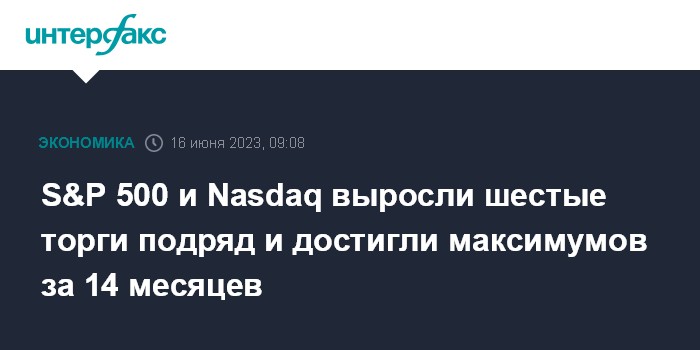 S&P 500 и Nasdaq выросли шестые торги подряд и достигли максимумов за 14 месяцев