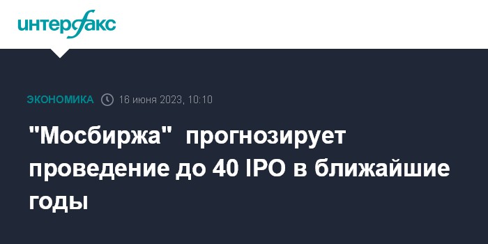Москва. 16 июня. INTERFAX.RU - "Московская биржа" ожидает, что порядка 10 компаний проведут IPO в 2023 году, в ближайшие несколько лет - до 40, сообщил на ПМЭФ председатель правления торговой площадки Юрий Денисов.