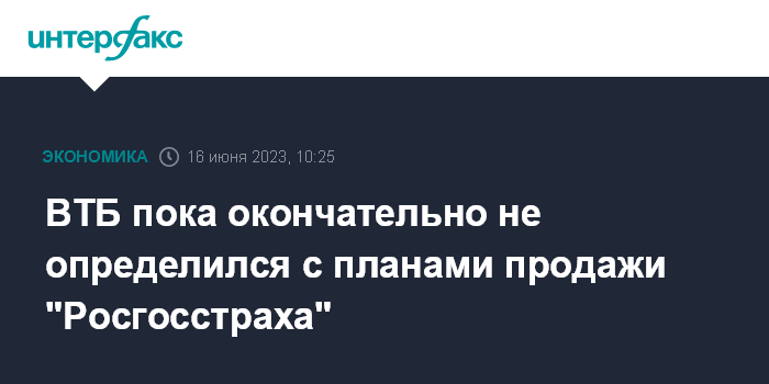 ВТБ пока окончательно не определился с планами продажи "Росгосстраха"