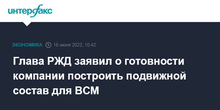 Москва. 16 июня. INTERFAX.RU -ОАО "РЖД" заинтересовано в создании высокоскоростной магистрали (ВСМ) и готово построить подвижной состав для нее, заявил глава компании Олег Белозеров на деловом завтраке Сбербанка в рамках ПМЭФ-2023.