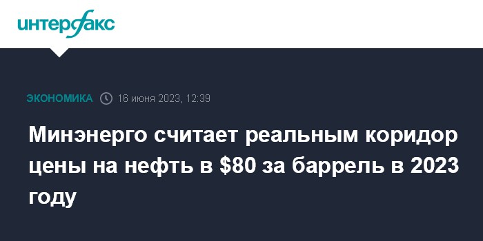 Москва. 16 июня. INTERFAX.RU - Коридор цены на нефть в $80 за баррель в 2023 году вполне достижим, заявил телеканалу "Известия" министр энергетики Николай Шульгинов.
