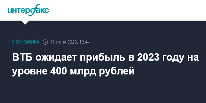 ВТБ ожидает прибыль в 2023 году на уровне 400 млрд рублей