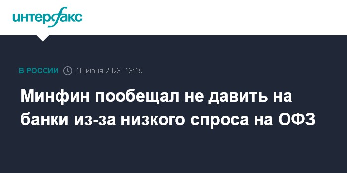 Минфин пообещал не давить на банки из-за низкого спроса на ОФЗ