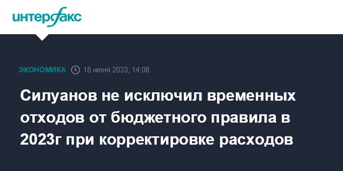Москва. 16 июня. INTERFAX.RU - Министр финансов РФ Антон Силуанов не исключил временных отступлений от бюджетного правила в текущем году в случае корректировки бюджетных расходов.