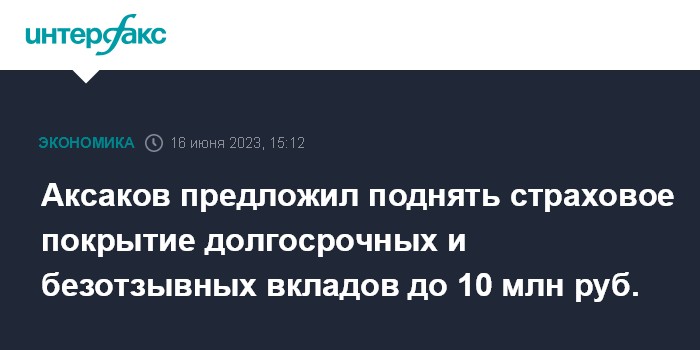 Москва. 16 июня. INTERFAX.RU - Система формирования долгосрочных (от трех лет) и безотзывных вкладов, помимо их освобождения от НДФЛ, может включать и увеличение размера страхового покрытия с 1,4 млн до 10 млн рублей. Об этом заявил в ходе сессии на ПМЭФ-2023 глава думского комитета по финансовому рынку Анатолий Аксаков.