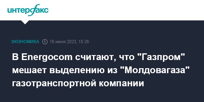 Москва. 16 июня. INTERFAX.RU - Предприятие "Молдовагаз" игнорирует законодательство Молдавии, отказываясь под влиянием "Газпрома" соблюдать процедуру выделения и сертификации независимой газотранспортной компании, считает член правления молдавской госкомпании Energocom (основной импортер газа и электроэнергии для республики), бывший вице-спикер парламента Александр Слусарь.