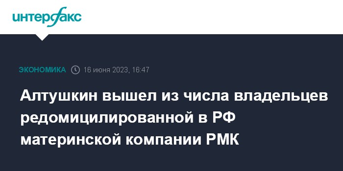 Алтушкин вышел из числа владельцев редомицилированной в РФ материнской компании РМК