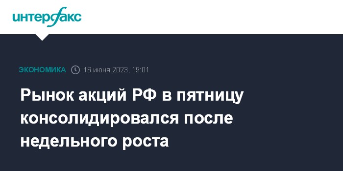 Москва. 16 июня. INTERFAX.RU - Рынок акций РФ в пятницу консолидировался при смешанной динамике blue chips после недельного роста, наблюдая за новостями с Петербургского международного экономического форума (ПМЭФ), в то время как внешние площадки в конце недели подавали позитивные сигналы. Индекс МосБиржи закрепился выше 2800 пунктов на фоне ослабления рубля, обновив пик с апреля 2022 года; лидерами снижения выступили акции "Яндекса", фаворитами стали "Русал" и Polymetal.