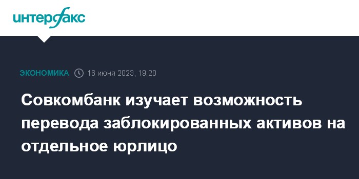 Совкомбанк изучает возможность перевода заблокированных активов на отдельное юрлицо