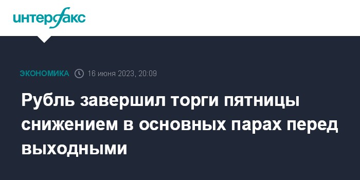 Как отмечают эксперты "Интерфакс-ЦЭА", рубль завершил торги пятницы умеренным снижением в основных парах. Влияние на его динамику оказал фактор приближающихся выходных, а также потенциальный рост геополитических рисков, обозначенный в выступлении президента РФ Владимира Путина в ходе Петербургского международного экономического форума (ПМЭФ). В частности, Путин заявил об угрозе все большего втягивания НАТО в конфликт на Украине.