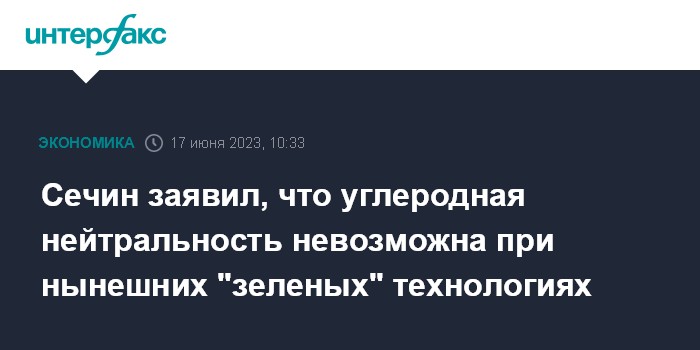 Сечин заявил, что углеродная нейтральность невозможна при нынешних "зеленых" технологиях