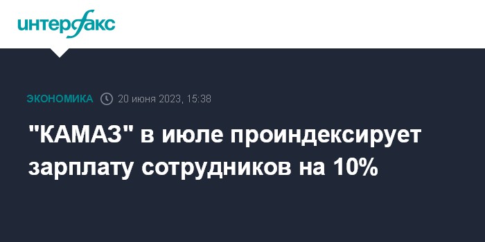 Москва. 20 июня. INTERFAX.RU - ПАО "КАМАЗ" 1 июля проведет очередную индексацию зарплат сотрудников, сообщило корпоративное издание "Вести КАМАЗа" со ссылкой на пресс-секретаря компании Олега Афанасьева.