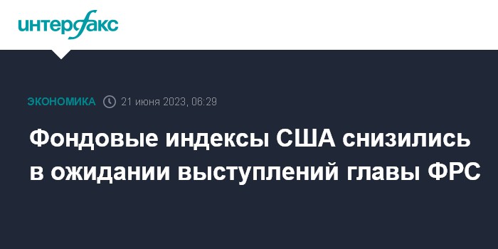 Фондовые индексы США снизились в ожидании выступлений главы ФРС