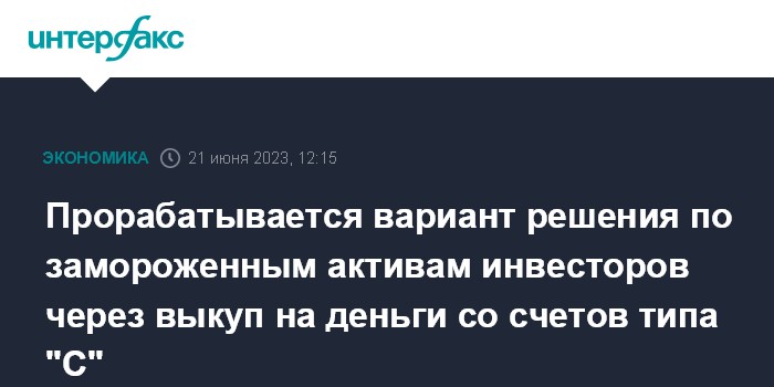 Прорабатывается вариант решения по замороженным активам инвесторов через выкуп на деньги со счетов типа "С"