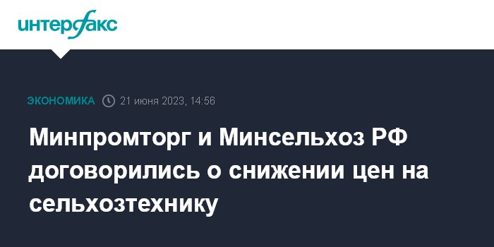Москва. 21 июня. INTERFAX.RU - Минсельхоз и Минпромторг РФ договорились о снижении цен на сельхозтехнику при условии обязательного ее выкупа, сообщила первый замминистра сельского хозяйства РФ Оксана Лут.