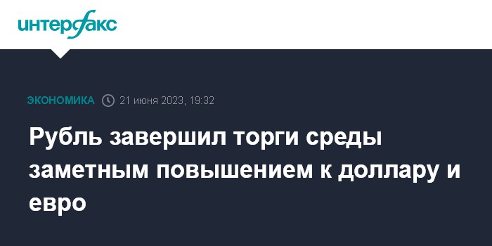 Москва. 21 июня. INTERFAX.RU - Доллар США и евро подешевели на Московской бирже по итогам торгов среды. Рубль вырос к бивалютной корзине на фоне позитивной динамики цен на нефть.