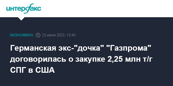 Германская экс-"дочка" "Газпрома" договорилась о закупке 2,25 млн т/г СПГ в США