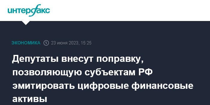 Москва. 23 июня. INTERFAX.RU - Депутаты подготовили и на следующей неделе внесут поправку, которая позволит регионам РФ выпускать цифровые финансовые активы (ЦФА), сообщил в ходе Чебоксарского экономического форума глава комитета Госдумы по финансовому рынку Анатолий Аксаков.
