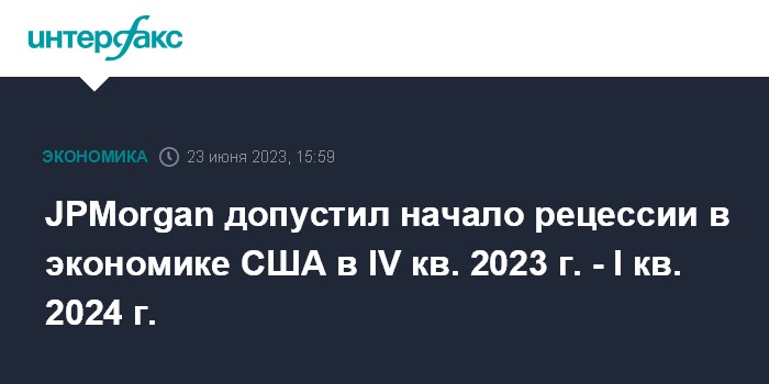 JPMorgan допустил начало рецессии в экономике США в IV кв. 2023 г. - I кв. 2024 г.