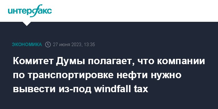 Комитет Думы полагает, что компании по транспортировке нефти нужно вывести из-под windfall tax