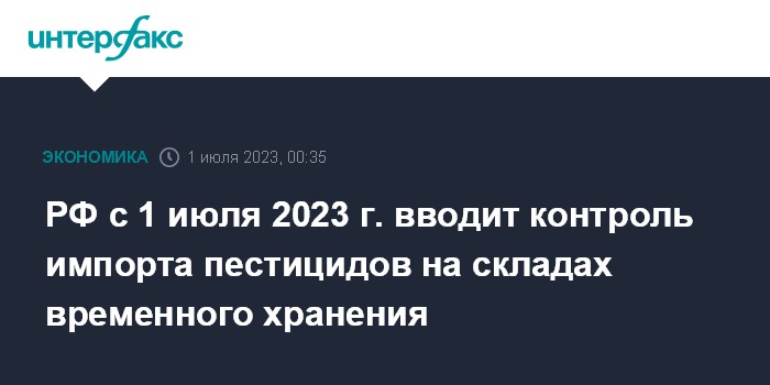 РФ с 1 июля 2023 г. вводит контроль импорта пестицидов на складах временного хранения