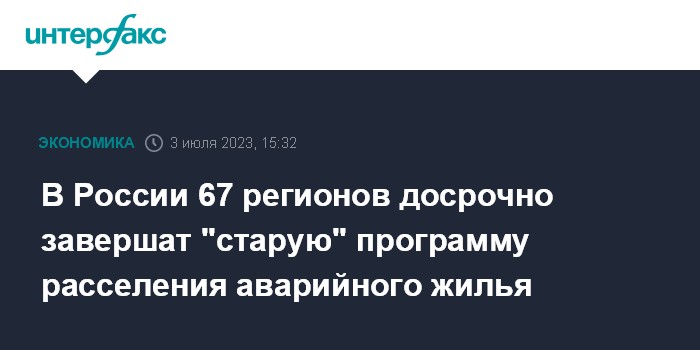 В России 67 регионов досрочно завершат "старую" программу расселения аварийного жилья