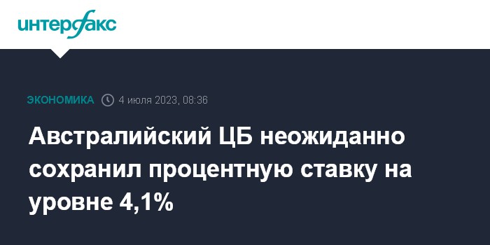 Австралийский ЦБ неожиданно сохранил процентную ставку на уровне 4,1%