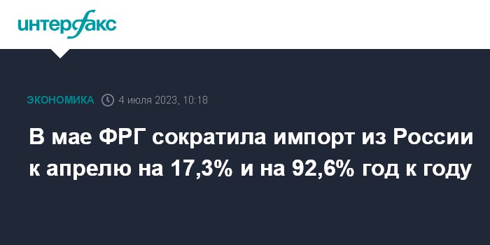 В мае ФРГ сократила импорт из России к апрелю на 17,3% и на 92,6% год к году