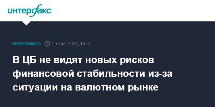 Москва. 4 июля. INTERFAX.RU - Дополнительных рисков финансовой стабильности от ситуации на валютном рынке не наблюдается, меры по возврату обязательной продажи валютной выручки экспортерами не требуются, считают в Банке России. Об этом журналистам сказала первый зампред ЦБ Ксения Юдаева.