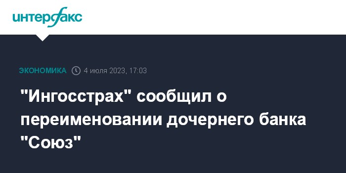 Акционеры "Союза" одобрили его переименование в "Ингосстрах банк" в декабре 2022 года.