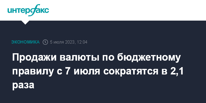 Продажи валюты по бюджетному правилу с 7 июля сократятся в 2,1 раза