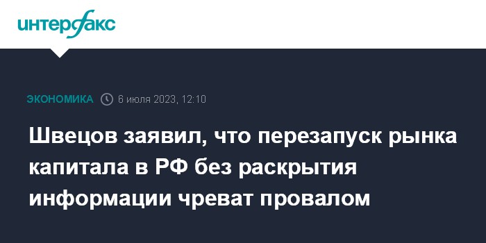 Швецов заявил, что перезапуск рынка капитала в РФ без раскрытия информации чреват провалом