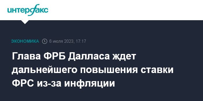 Глава ФРБ Далласа ждет дальнейшего повышения ставки ФРС из-за инфляции
