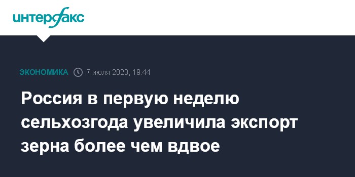 Россия в первую неделю сельхозгода увеличила экспорт зерна более чем вдвое