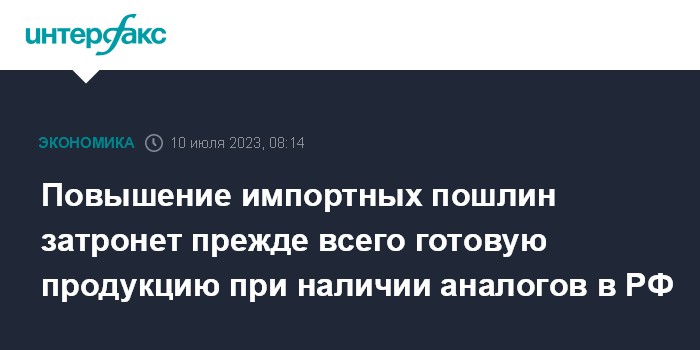 Повышение импортных пошлин затронет прежде всего готовую продукцию при наличии аналогов в РФ