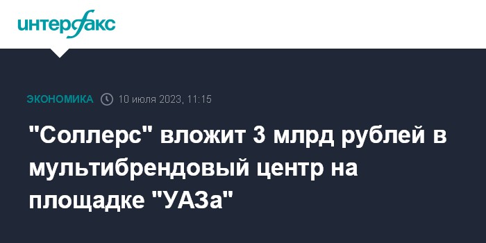 "Соллерс" вложит 3 млрд рублей в мультибрендовый центр на площадке "УАЗа"
