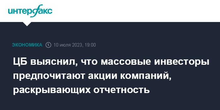 ЦБ выяснил, что массовые инвесторы предпочитают акции компаний, раскрывающих отчетность