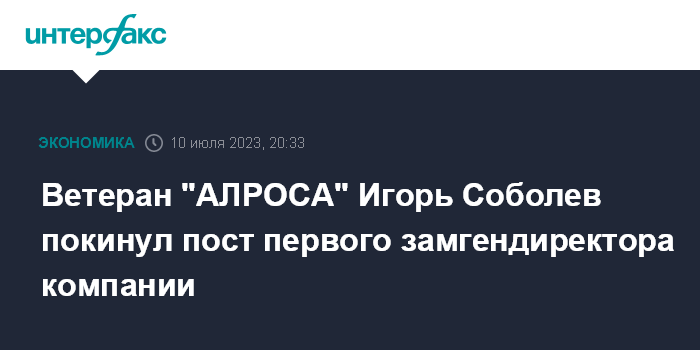Ветеран "АЛРОСА" Игорь Соболев покинул пост первого замгендиректора компании