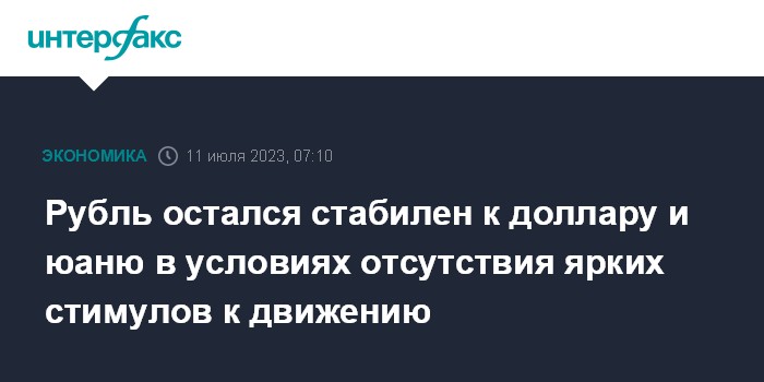 По мнению экспертов "Интерфакс-ЦЭА", стабильность рубля обусловлена отсутствием заметных сигналов к движению. Несмотря на внешний позитив - рост нефтяных котировок и мировых рынков капитала - нацвалюта не меняется в условиях сокращения поступления иностранной валюты от экспортеров. По данным ЦБ РФ, экспортеры в июне 2023 года снизили продажу валютной выручки на 22,9% - с $9,1 млрд в мае до $7 млрд (уровня продаж в апреле).