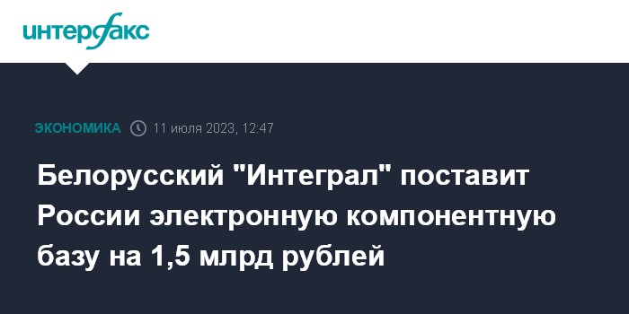 Москва. 11 июля. INTERFAX.RU - Белорусский производитель микроэлектроники ОАО "Интеграл" поставит российским компаниям электронную компонентную базу на 1,5 млрд российских рублей, передает "БелТА".